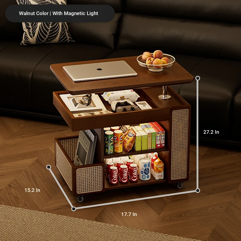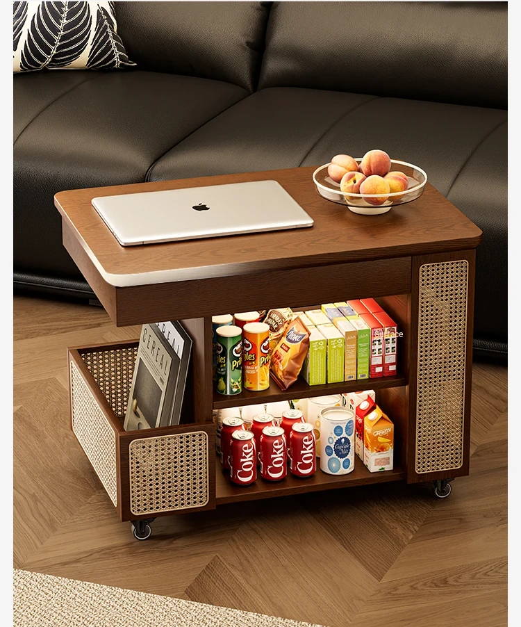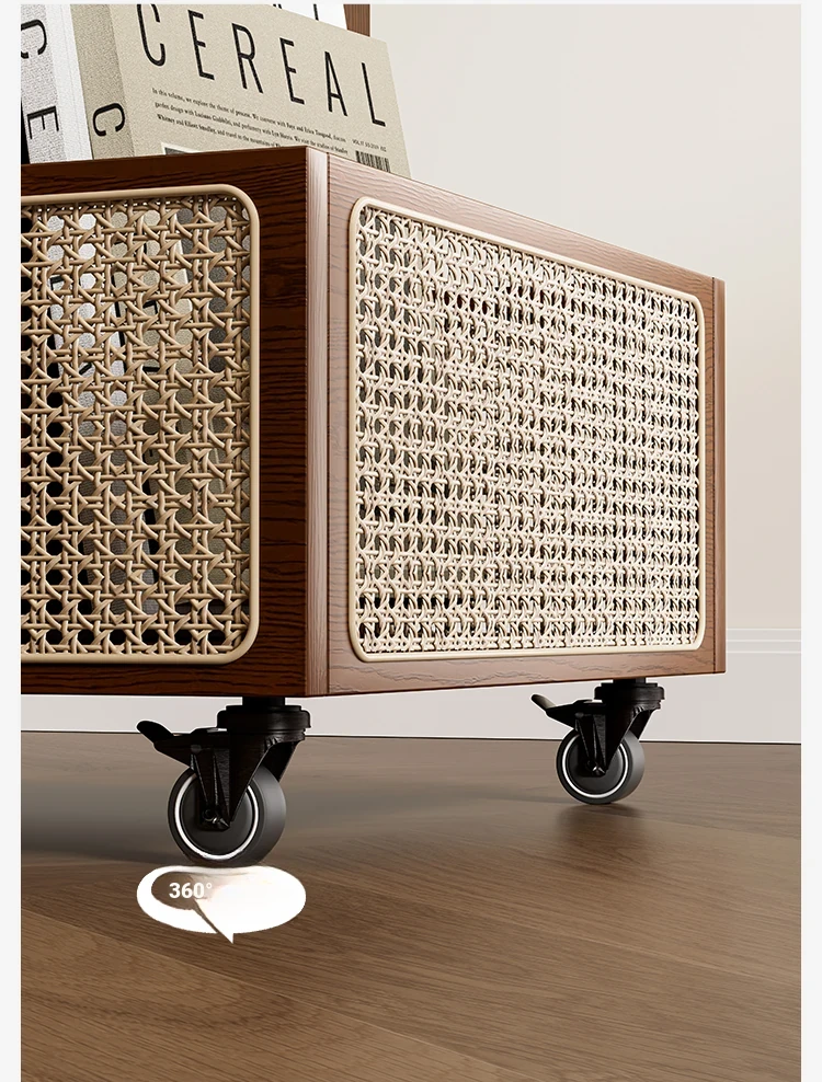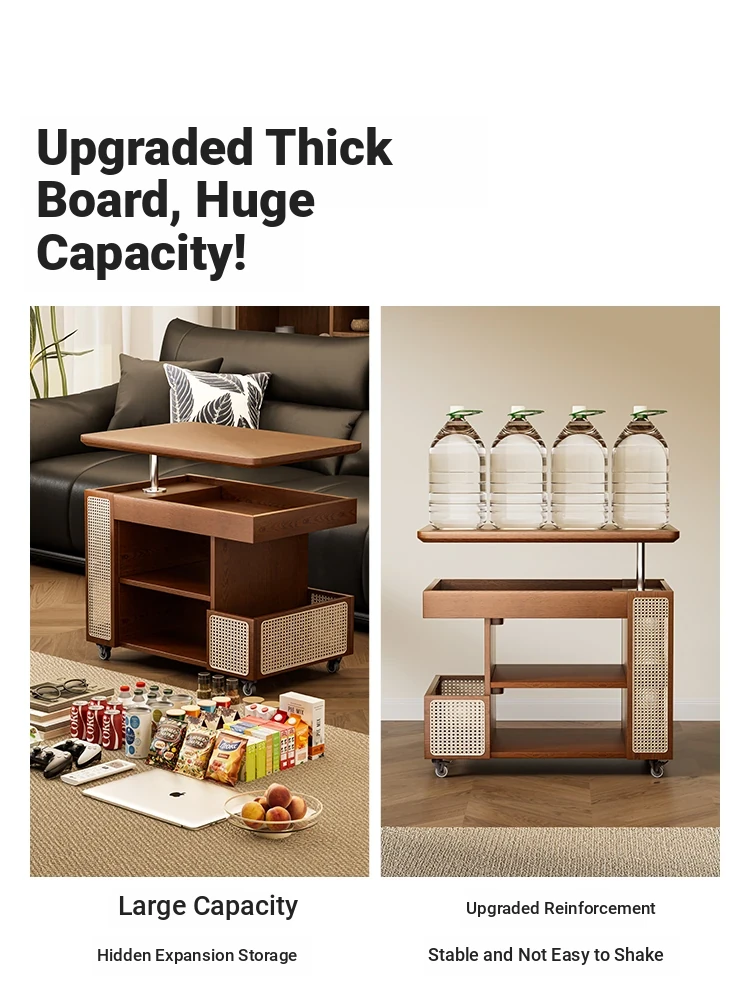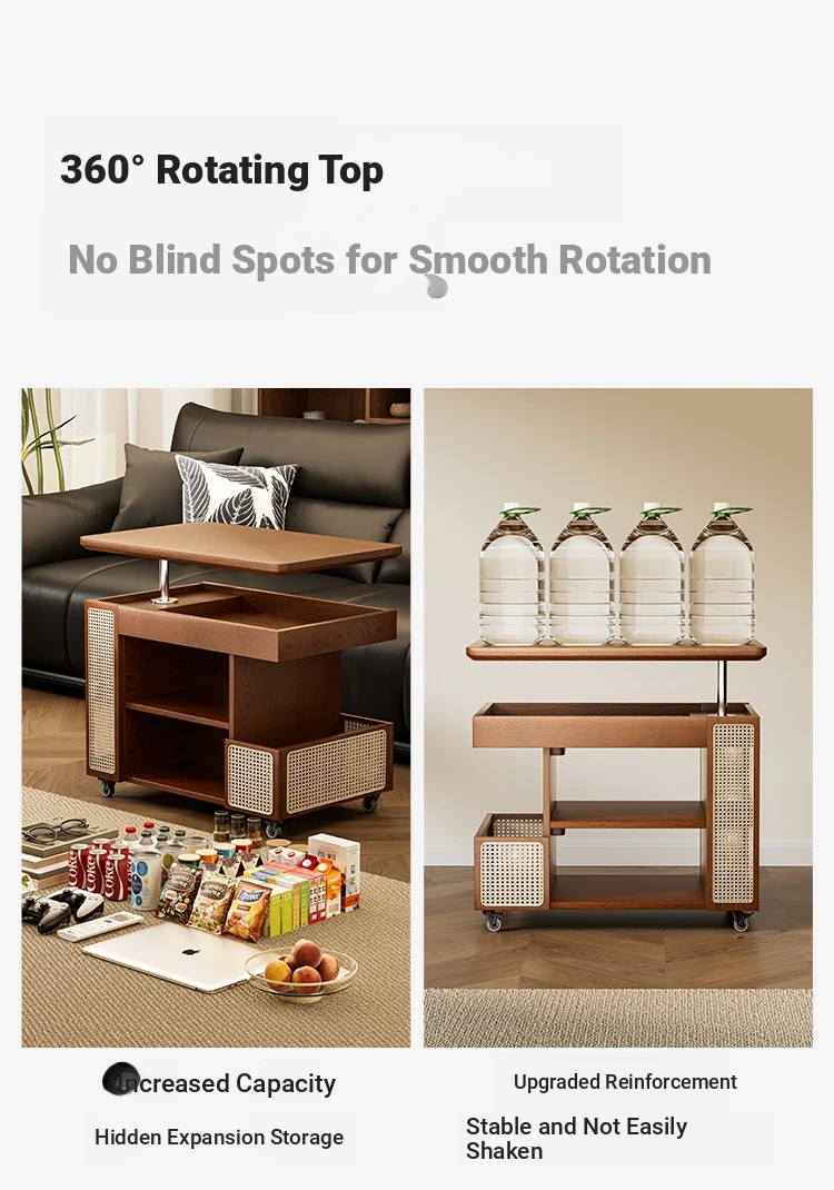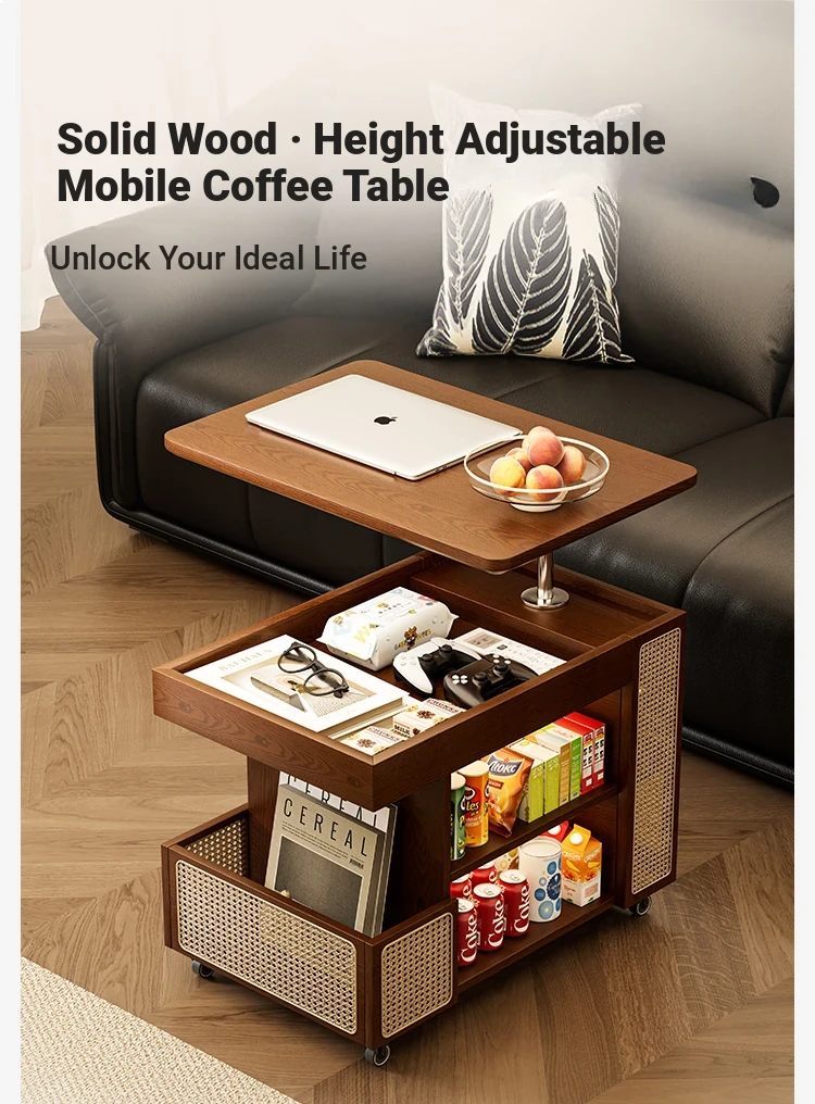 2025 New Stylish Solid Wood Rolling Coffee Table - Compact Sofa Side Cabinet with Vintage Charm, Perfect for Small Spaces