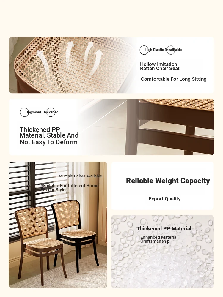 Vintage Rattan Dining Chair - Stylish and Comfortable Stackable Plastic Accent Chair for Home, Perfect for Living Room and Dining Spaces, Adds a Touch of Luxury to Your Decor