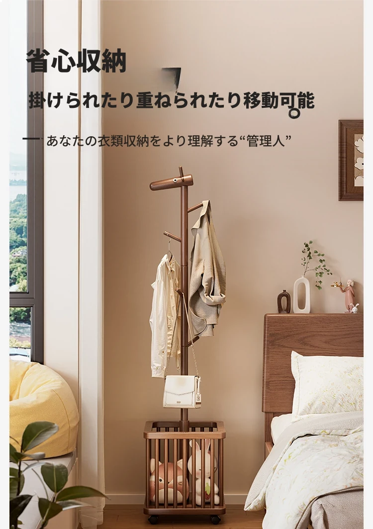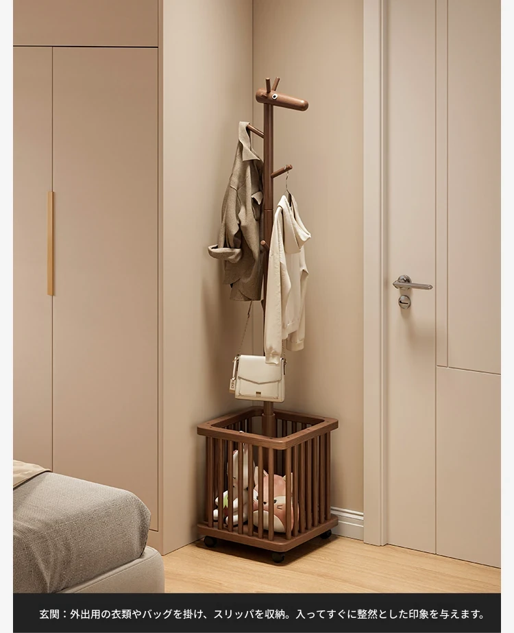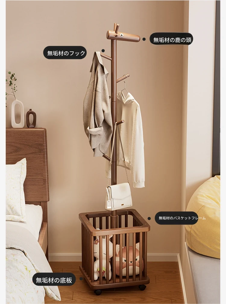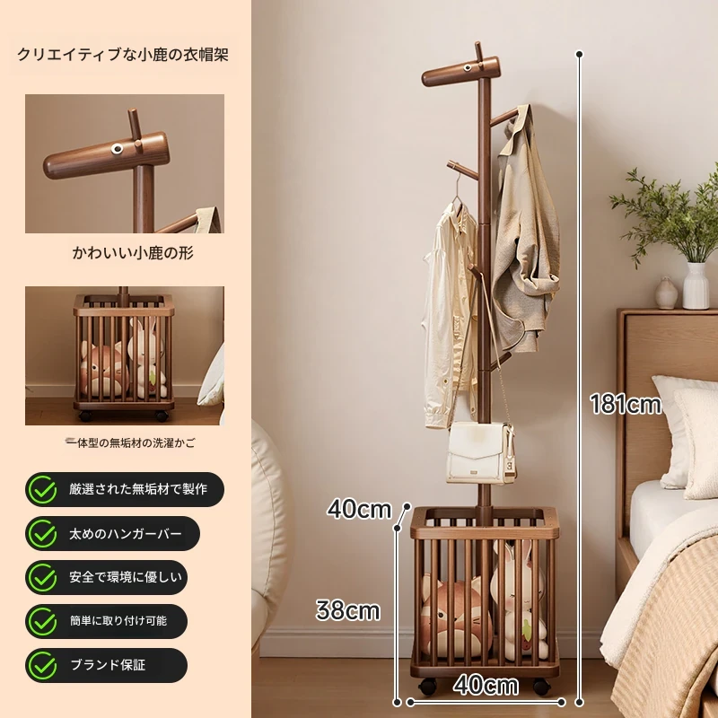 天然木製の小鹿ハンガーラック - おしゃれでかわいいデザイン!寝室やリビングに最適な移動式クローゼット。洗濯物や小物を収納できる便利なアイデア商品。お子様のお部屋にもぴったりな衣服掛け!