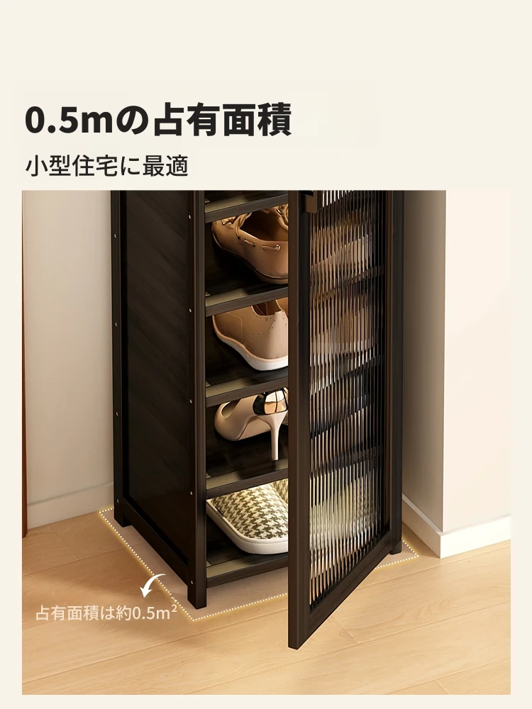スリムな玄関収納!狭いスペースに最適な靴箱。多層設計で収納力抜群、入室時のホコリ対策もバッチリ。家庭用にぴったりなシンプルな収納キャビネットで、スッキリとした玄関を実現!