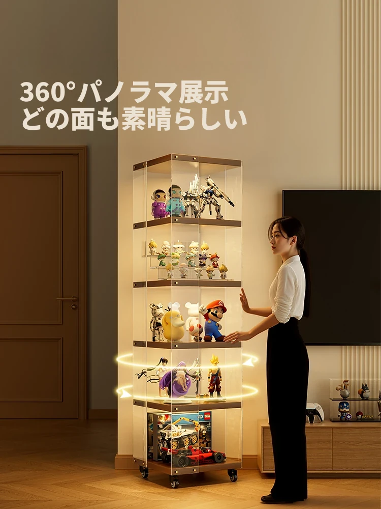 鍵付き透明アクリルディスプレイキャビネット - ロック機能付きで安心、LED照明で魅力的に演出!ホコリから守り、大切なフィギュアやコレクションを美しく展示するための理想的な収納家具。