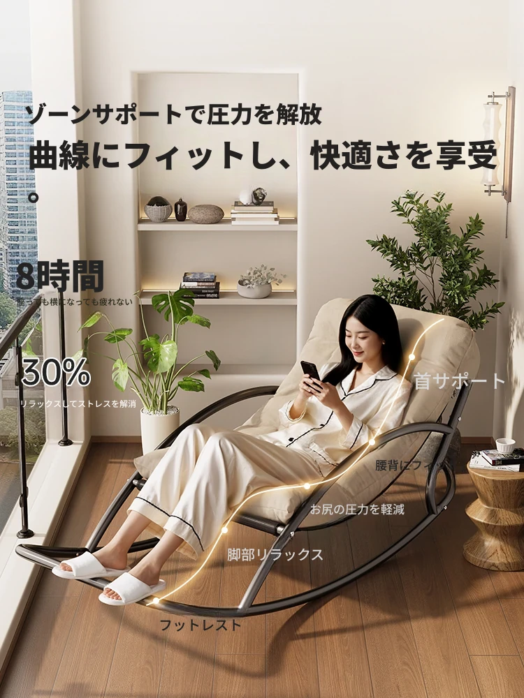リラックスできる大人用ロッキングチェア!陽台にぴったりの快適ソファ、寝転びながらくつろげる最新の25新作シングルチェア。家でのリラックスタイムに最適!