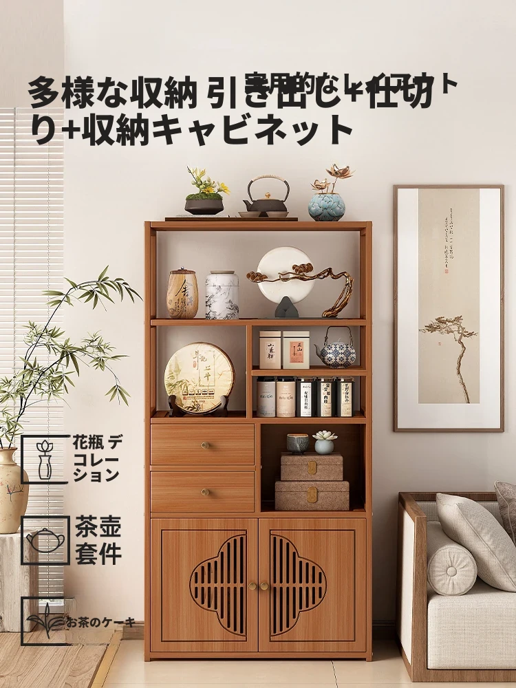 多層茶器収納ラック - 小型中華風無垢材使用!茶室を華やかに演出し、あなたの茶器を美しく展示。機能的でスタイリッシュなデザインで、空間を有効活用!