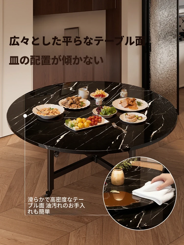 新型折りたたみ式ダイニングテーブル - 大理石模様の家庭用大丸テーブル、12人〜15人用、2025年最新モデル!スペースを有効活用し、家族や友人との楽しい食事を演出します。