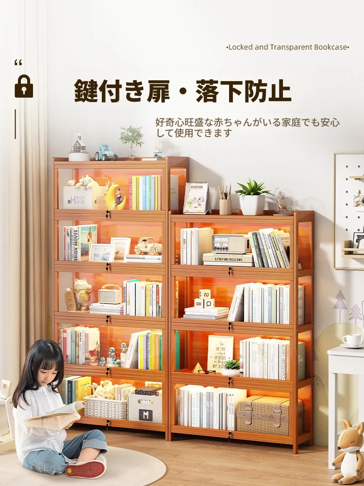 鍵付き書棚 ほこり対策 子供部屋・リビングに最適!おしゃれなフロア収納ラック 便利な壁掛けタイプ 家庭用整理整頓キャビネット