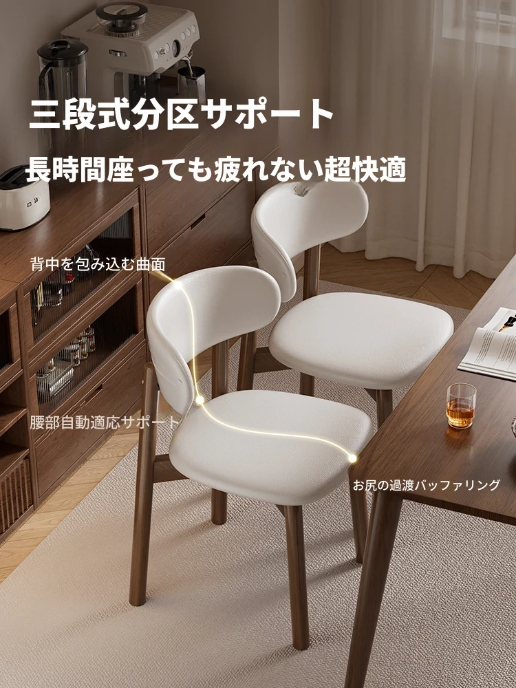 羊角椅 背もたれ付き 椅子 天然木製 ダイニングチェア ソフトパッド 厚手 家庭用 モダンシンプル スツール アンティーク風 リラックスチェア