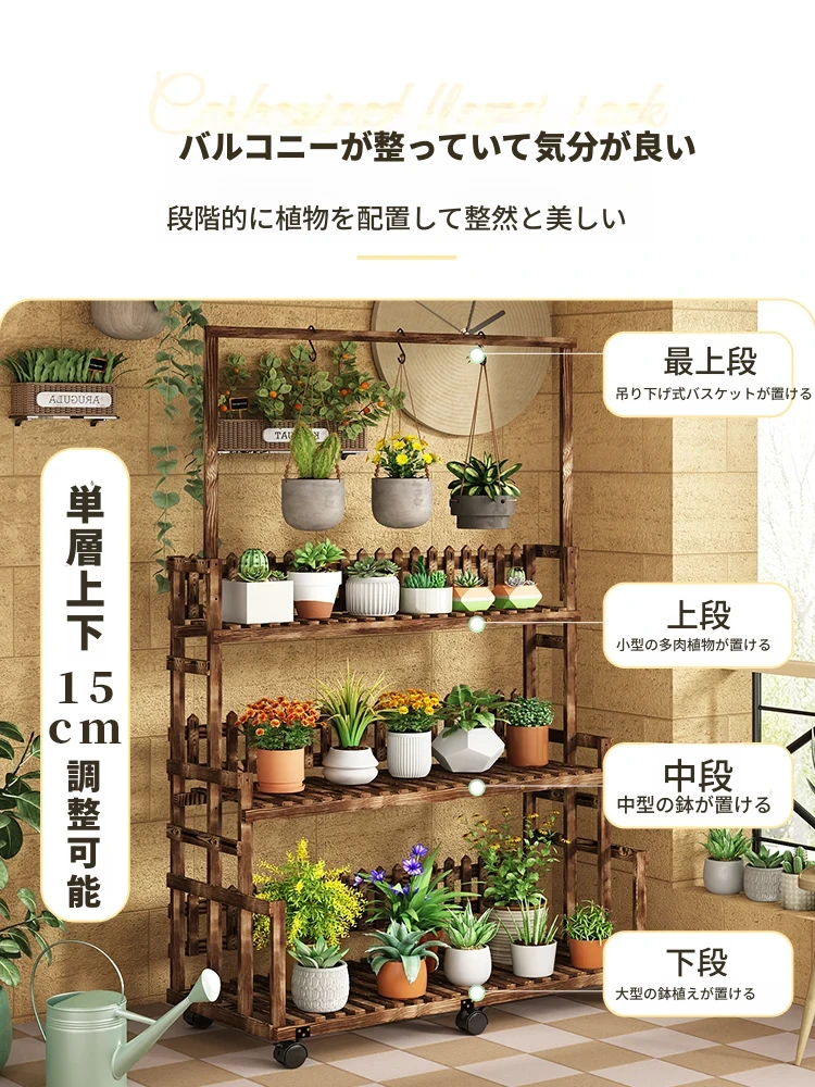 2022年新作!多層式実木製フラワースタンド - 腐食防止設計で、バルコニーやリビングに最適!おしゃれで使いやすい多肉植物用ポットラック。お部屋を華やかに彩るアイテム!