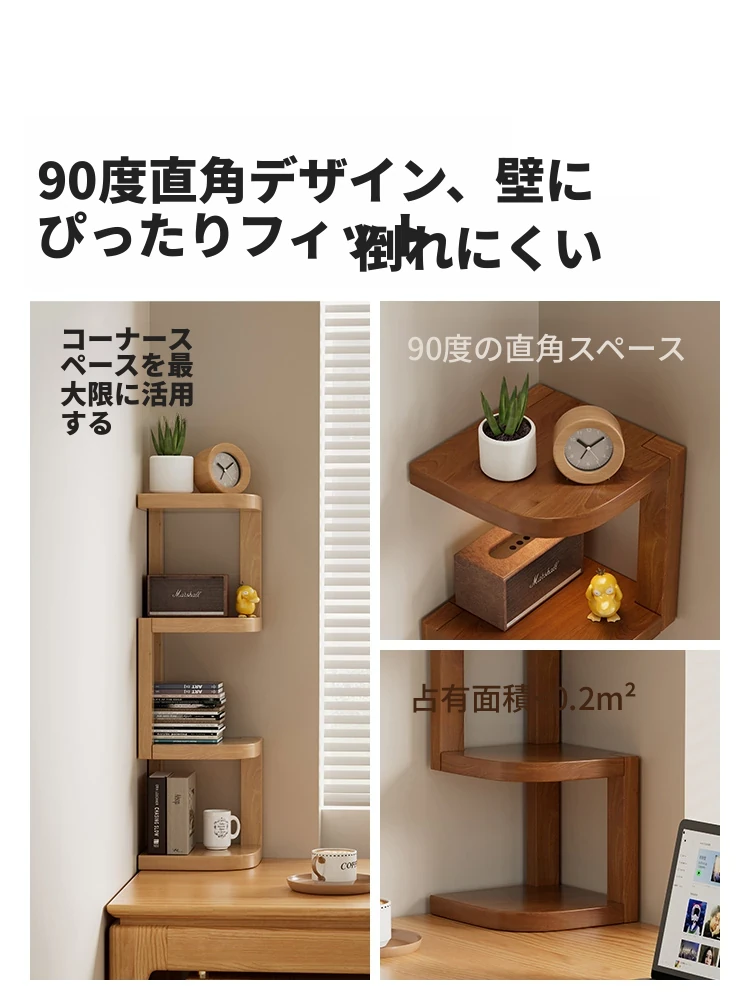 無垢材のデスク用書棚 コーナー収納ラック 学生や家庭に最適!シンプルでスタイリッシュな角型キャビネット、デスク上のスペースを有効活用し、整理整頓をサポートします。