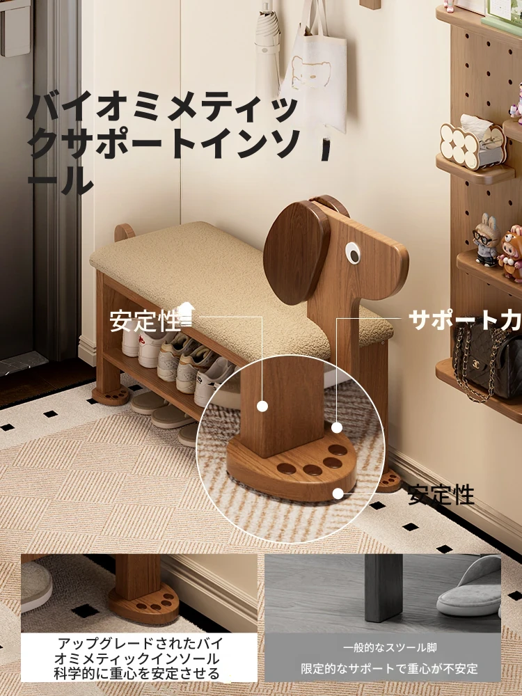 かわいい実木製の小犬シューズベンチ - 家庭用玄関シューズラック!おしゃれで実用的なデザイン、訪問者を迎える素敵なアイテム。ドアの前で靴を履くのが楽しくなる!